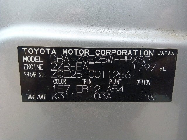 CHASSIS NO. | ZGE25-0011256 |