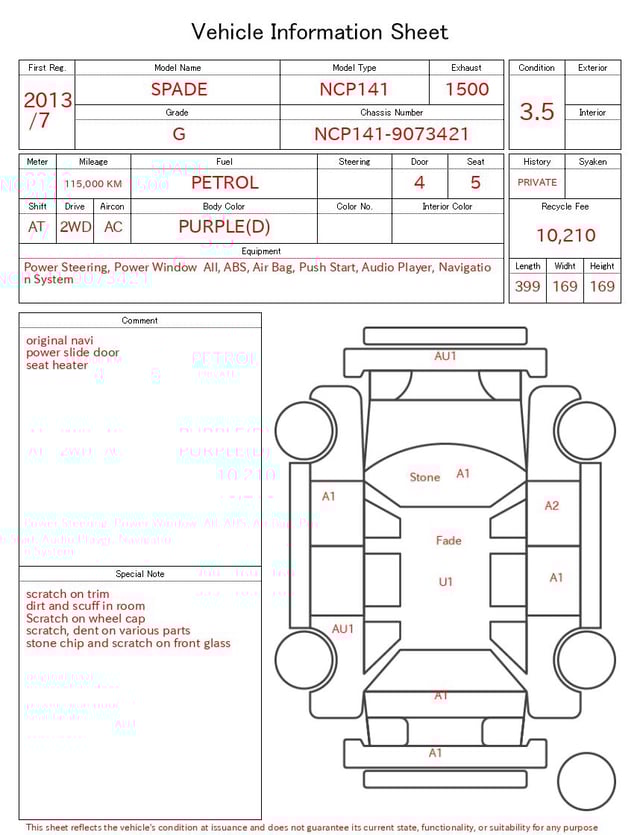CHASSIS NO. | NCP141-9073421 |