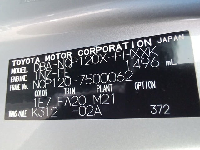 CHASSIS NO. | NCP120-7500062 |