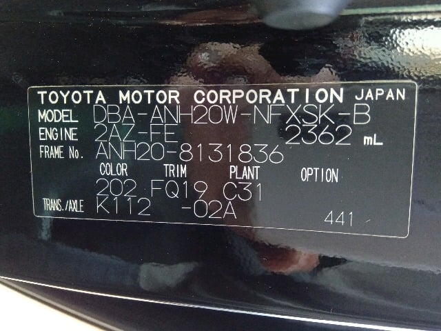 CHASSIS NO. | ANH20-8131836 |