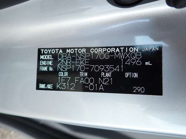 CHASSIS NO. | NSP170-7093541 |