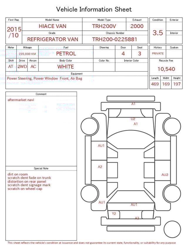 | CHASSIS NO. | TRH200-0225881 |
