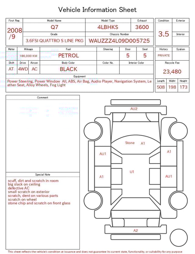 CHASSIS NO. | WAUZZZ4L09D005725 |
