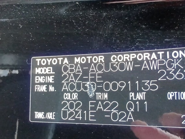 CHASSIS NO. | ACU30-0091135 |