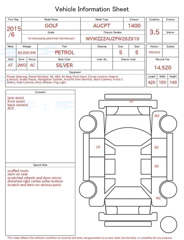 CHASSIS NO. | WVWZZZAUZFW262919 |