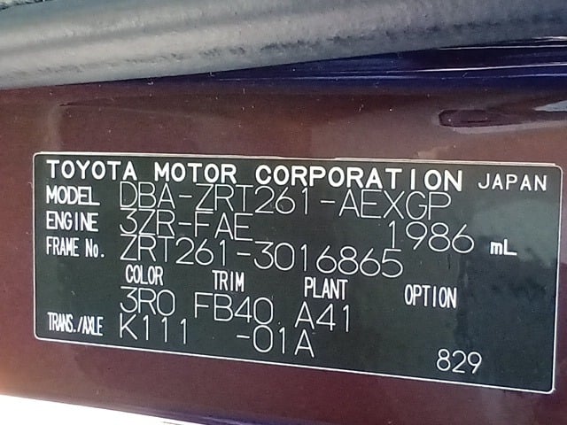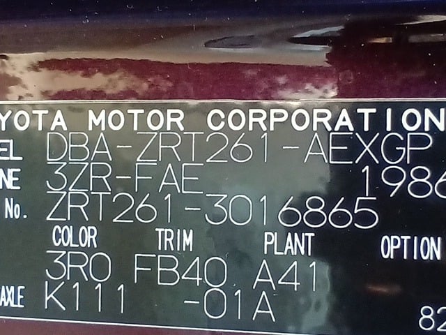 CHASSIS NO. | ZRT261-3016865 |