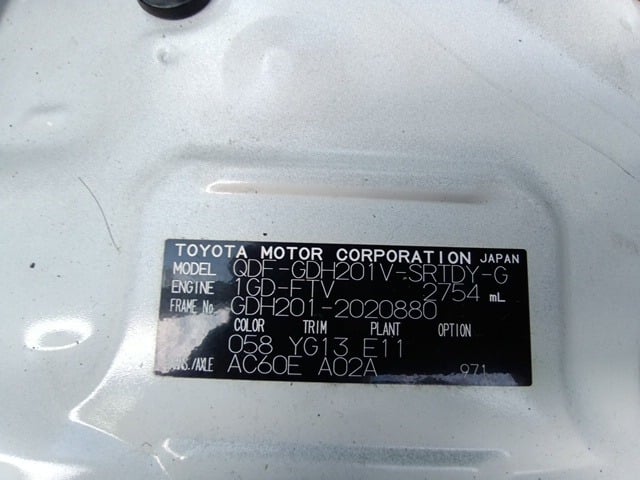 CHASSIS NO. | GDH201-2020880 |