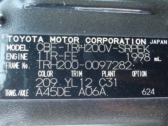CHASSIS NO. | TRH200-0097282 |