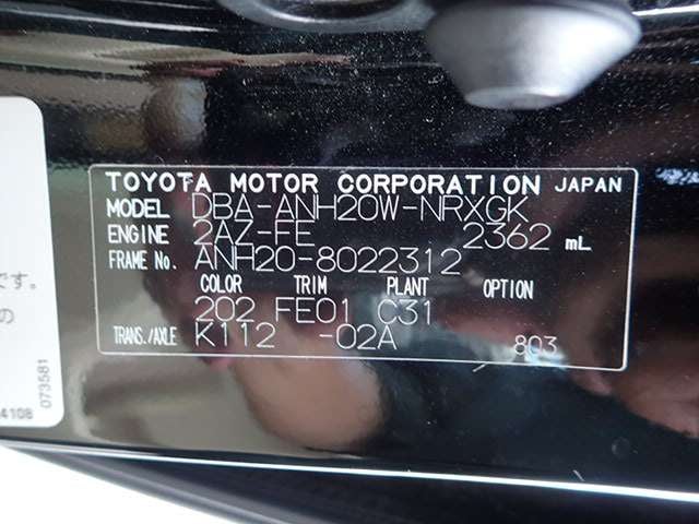 CHASSIS NO. | ANH20-8022312 |