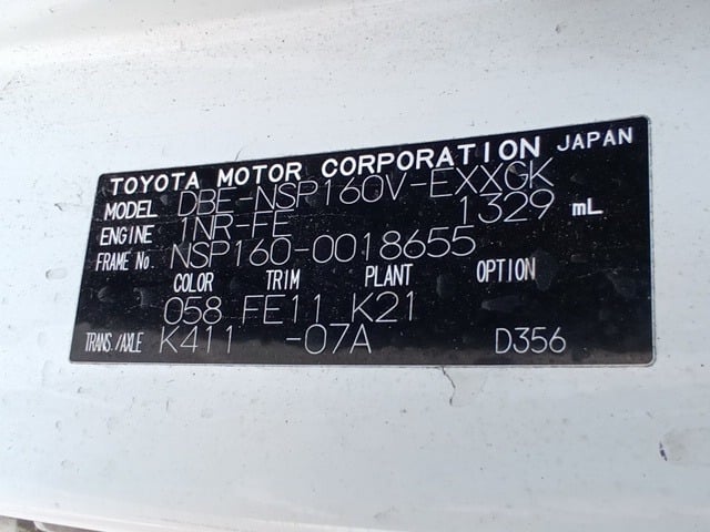 CHASSIS NO. | NSP160-0018655 |