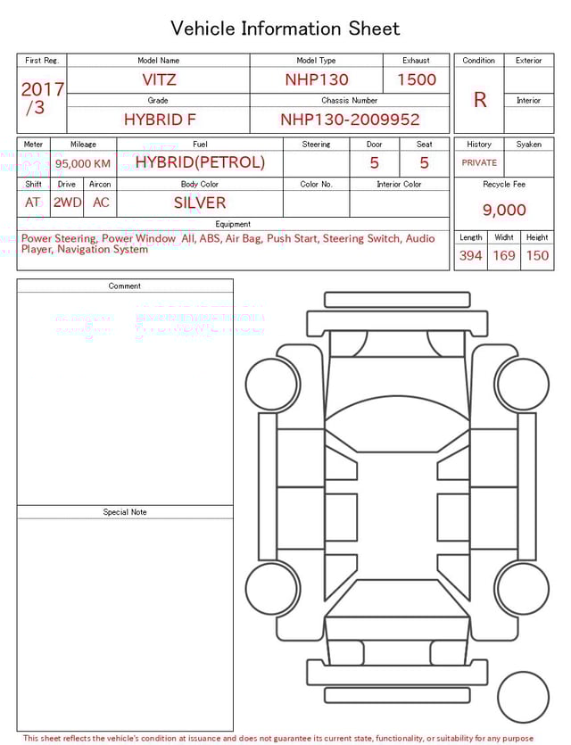 | CHASSIS NO. | NHP130-2009952 |