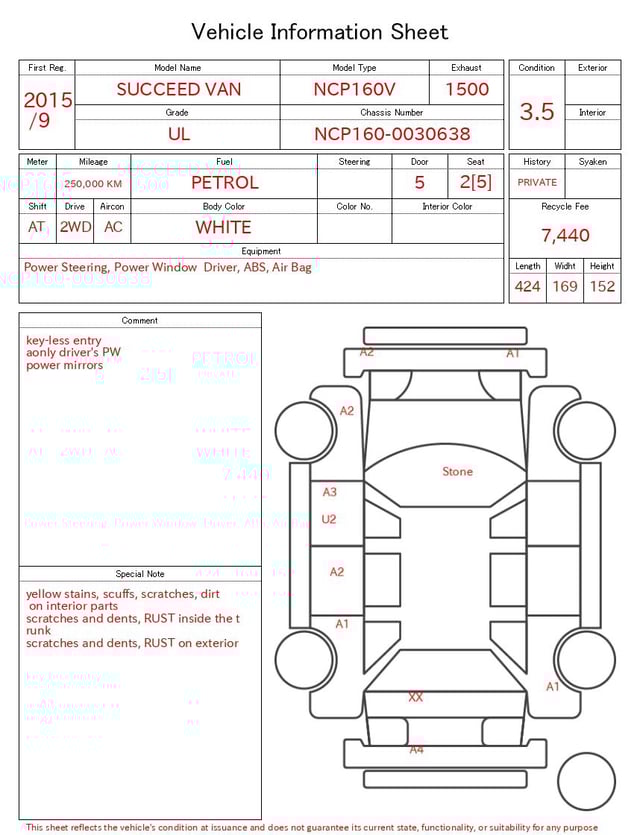 CHASSIS NO. | NCP160-0030638 |