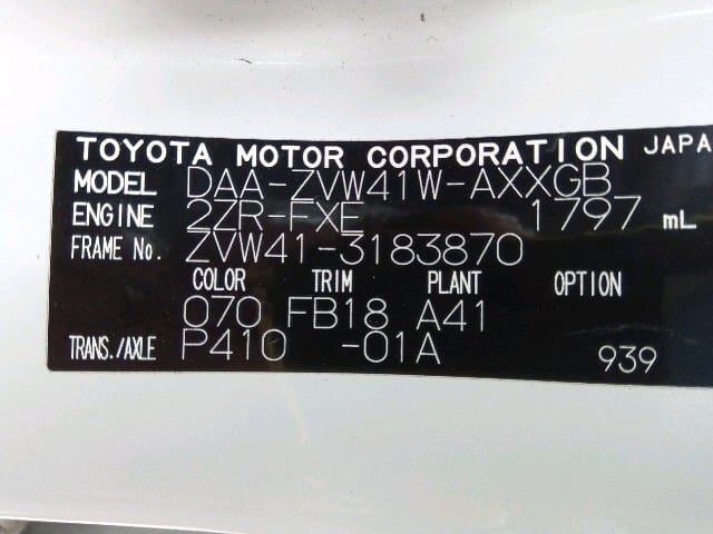 CHASSIS NO. | ZVW41-3183870 |