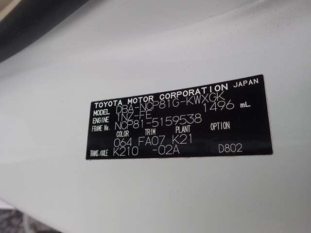CHASSIS NO. | NCP81-5159538 |