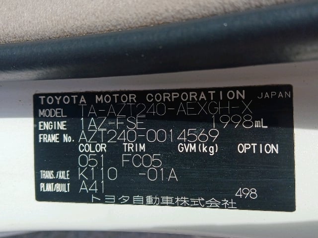 CHASSIS NO. | AZT240-0014569 |