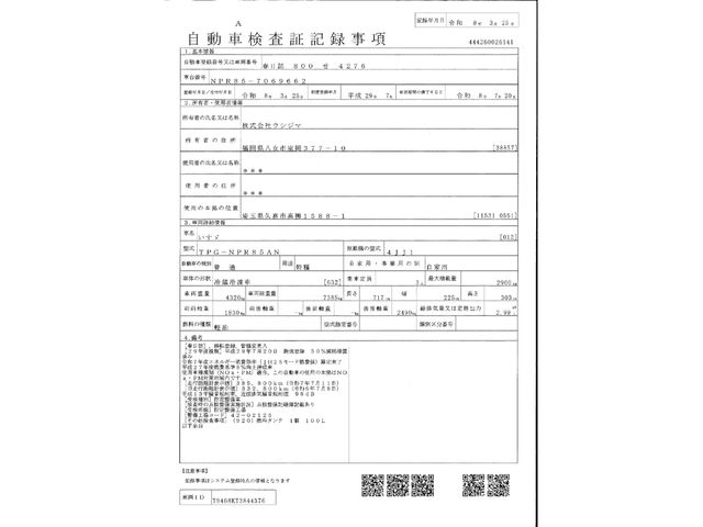 | CHASSIS NO. | NPR85-7069662 |