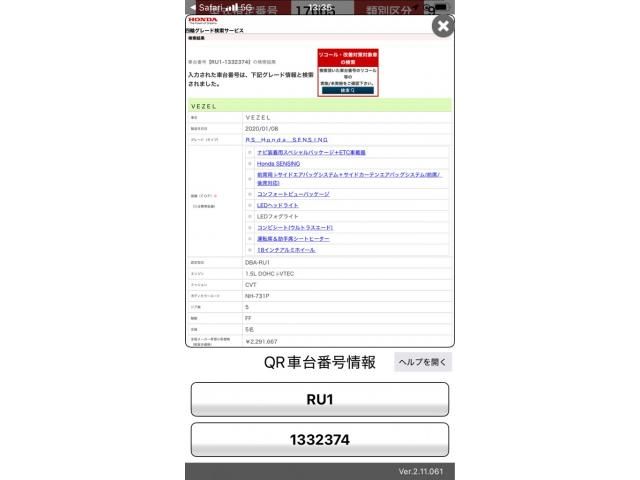| CHASSIS NO. | RU1-1332374 |