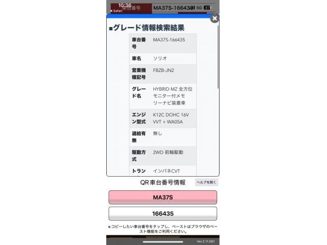 | CHASSIS NO. | MA37S-166435 |